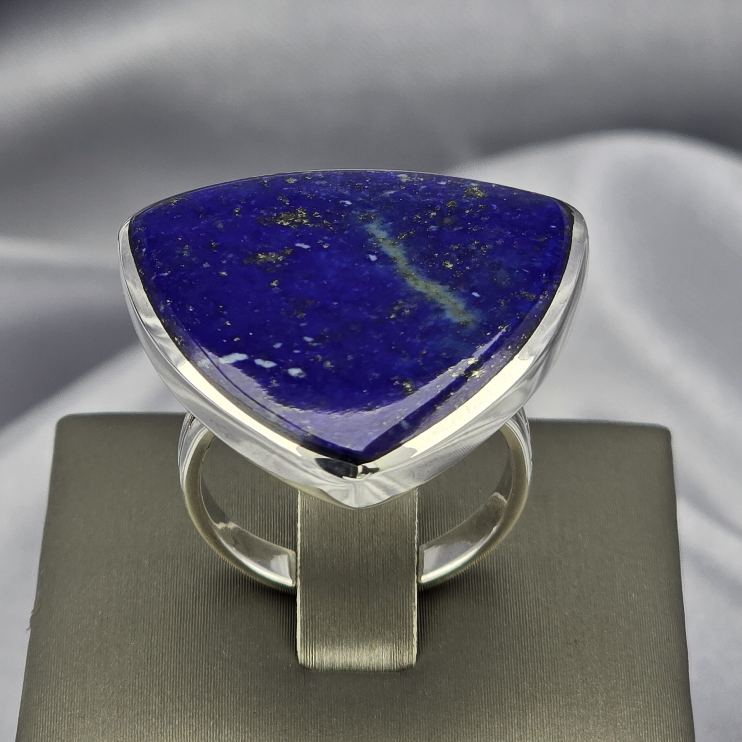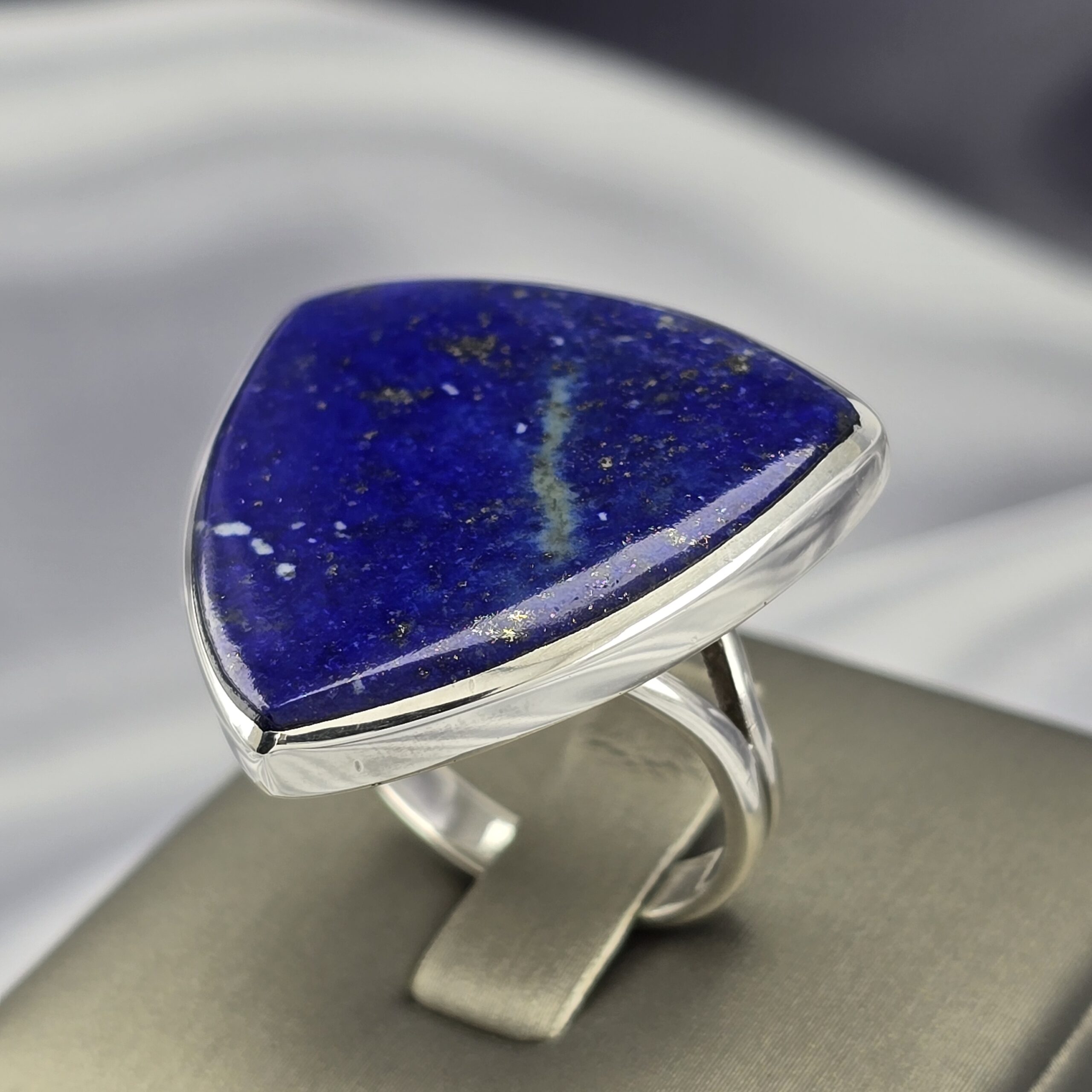 Este anillo escudo combina la solidez de la plata 950 con la intensidad del lapislázuli natural, creando un accesorio que transmite fuerza y estilo. Su diseño robusto y pulido artesanal resalta los tonos azules profundos del lapislázuli, haciendo de cada pieza una joya única y llena de personalidad.