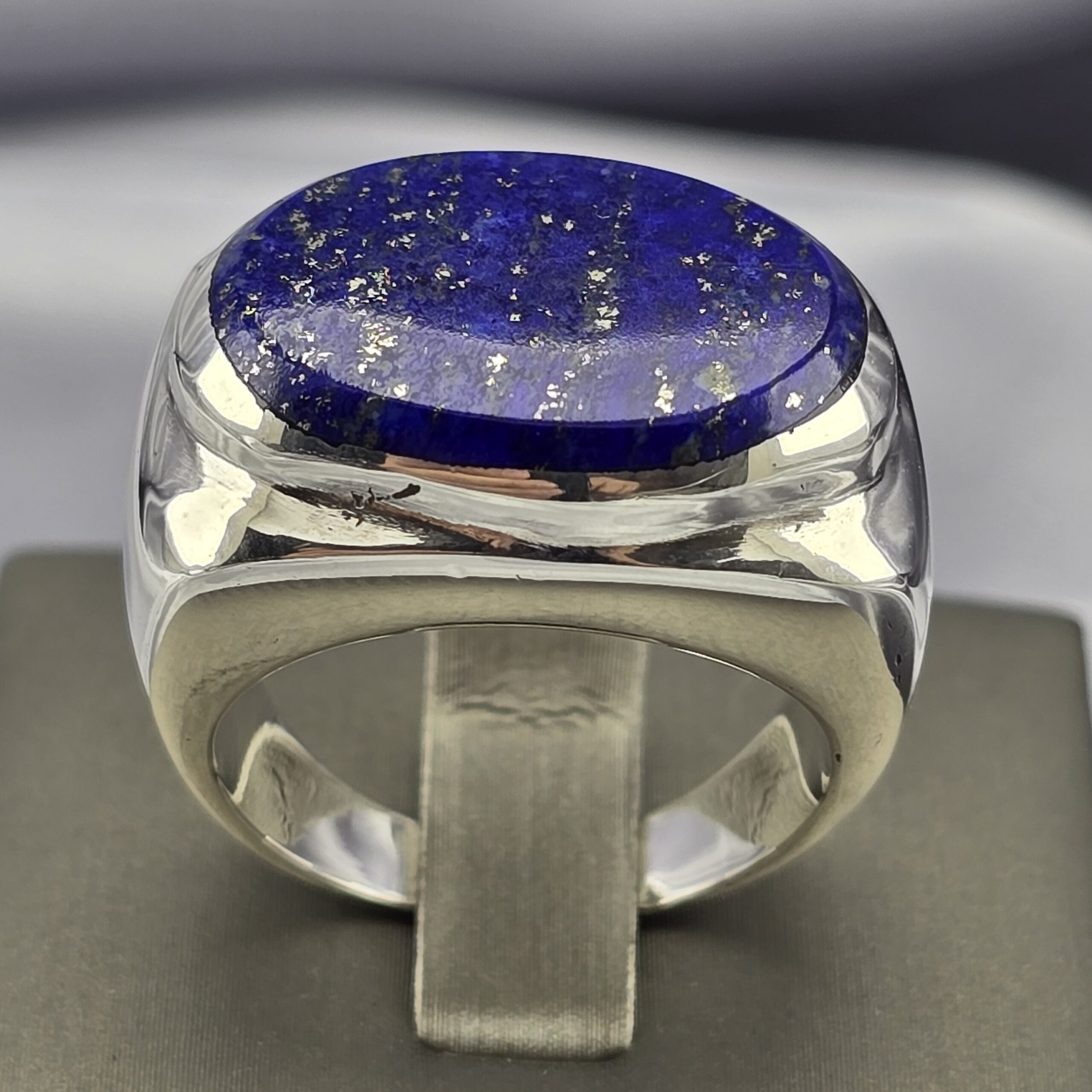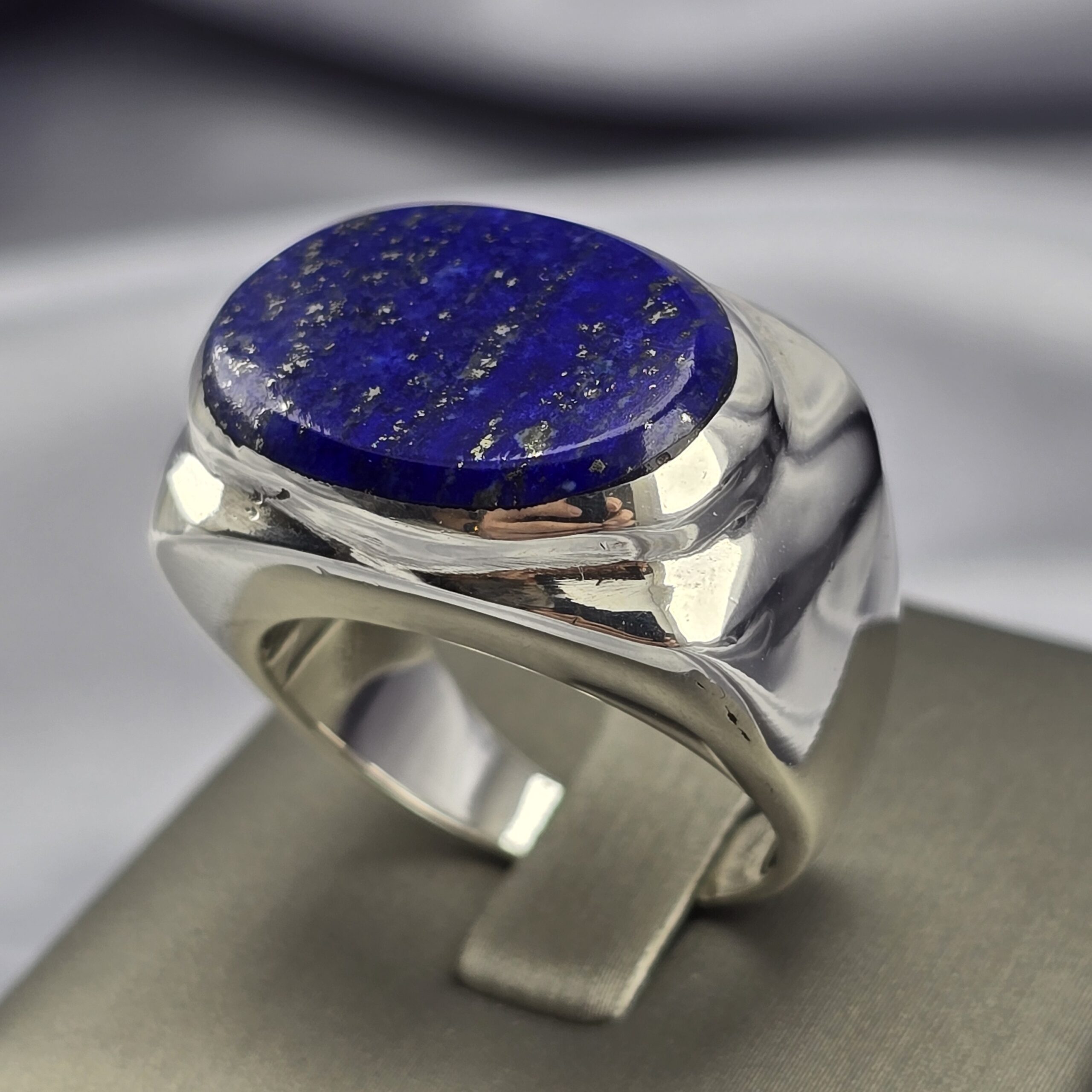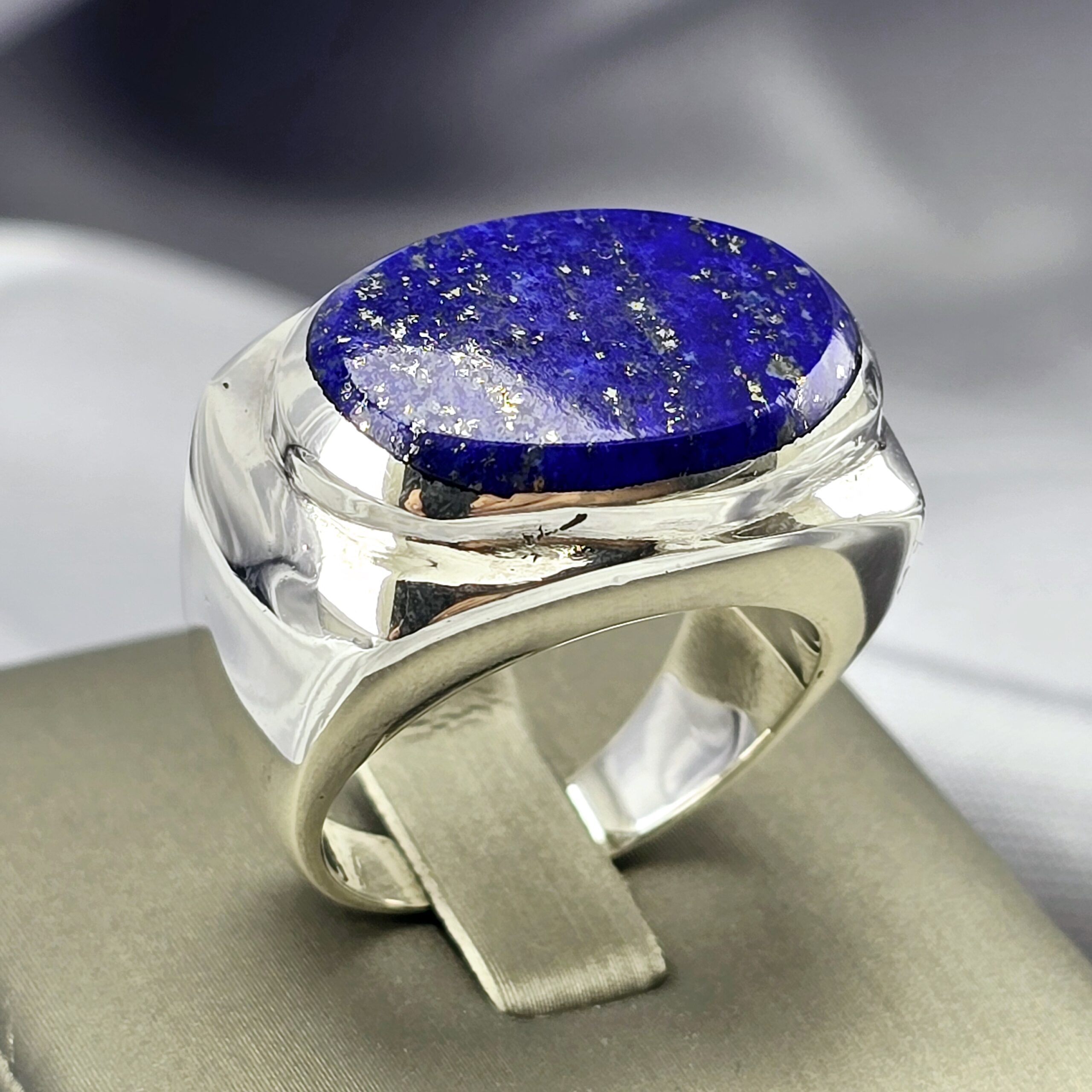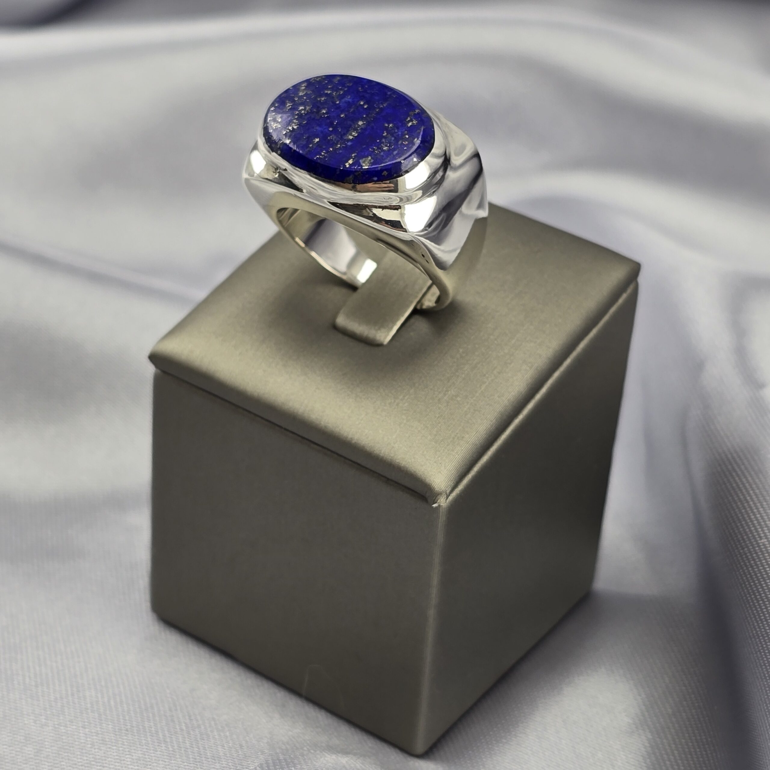 Descubre la elegancia atemporal de nuestro anillo macizo de plata 950, una pieza creada para quienes aprecian la joyería auténtica y con carácter. Su diseño destaca por un lapislázuli natural en forma oval, cuidadosamente engastado para resaltar la profundidad de su color azul intenso y sus destellos dorados únicos.