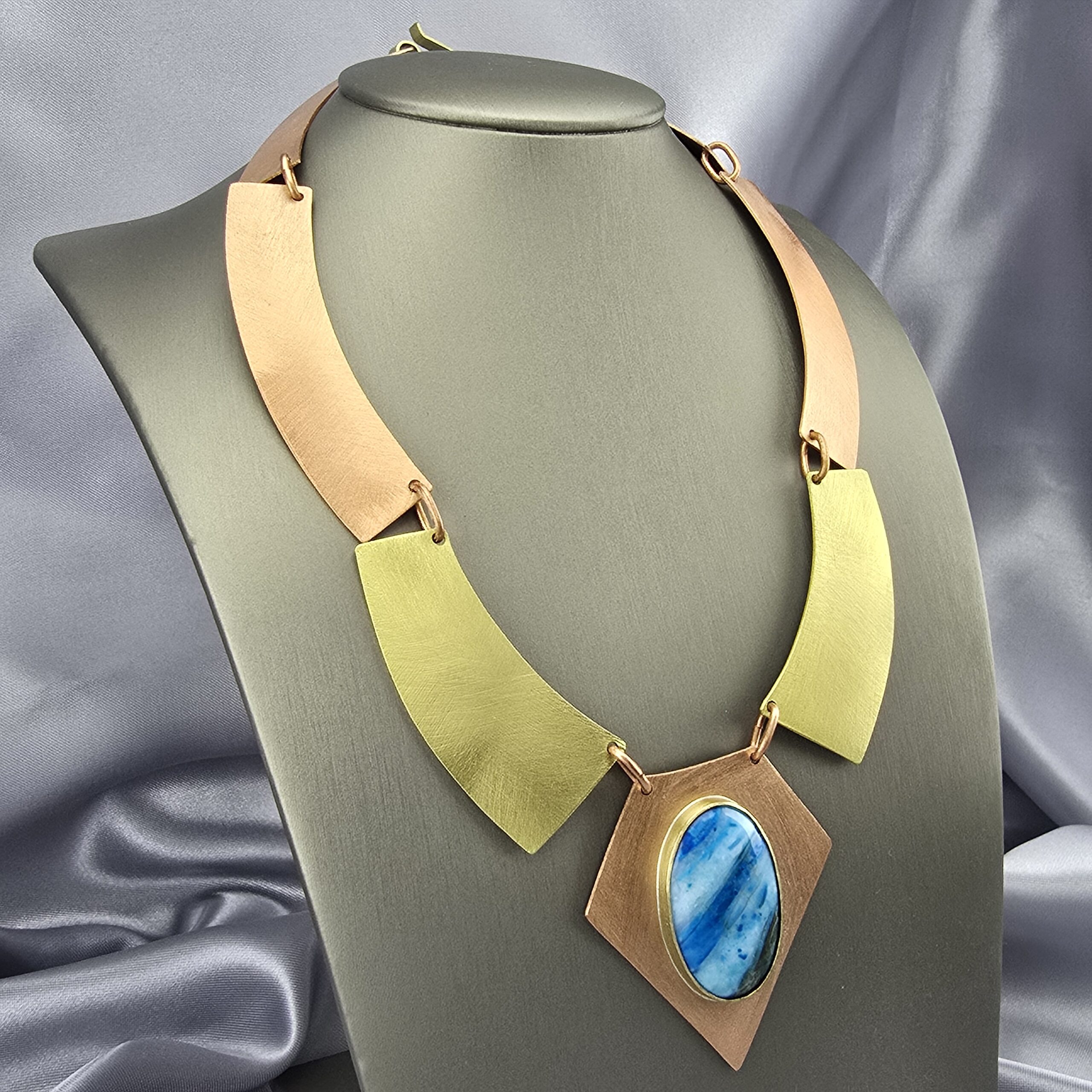 Materiales: Cobre, bronce y ópalo azul natural de alta calidad.